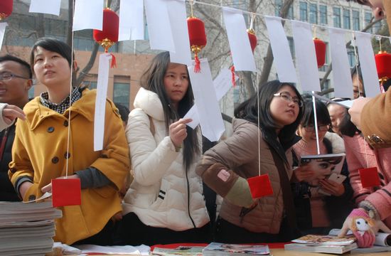 活动后,团省委书记陶军锋一行在校领导的陪同下,观摩了公司志愿服务项目展示。结合元宵佳节,公司以“传统文化进校园”为主题举行了“猜灯谜、对对联”活动。公司志愿者以中国传统文化知识为主要内容,准备了百余张小灯谜和对联,吸引来往的师生参与到活动中。通过有奖猜谜的形式和老员工形成了良好互动,在轻松、愉快的氛围中普及了中国传统文化知识。