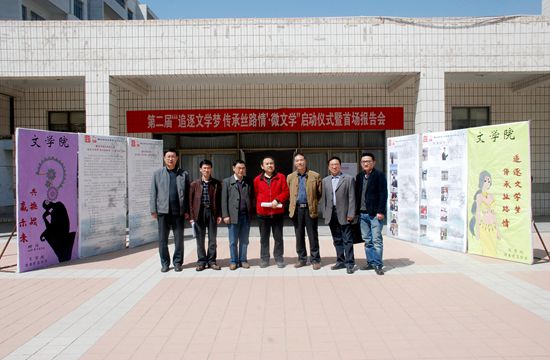 4月13日上午,学院第二届“追逐文学梦 传承丝路情•微文学”活动启动。甘肃省作家协会副主席、小说家、评论家马步升,甘肃省作家协会副主席、《飞天》杂志主编马青山,甘肃省作家协会副主席、诗人、《甘肃日报》文艺部副主任牛庆国应邀出席。
