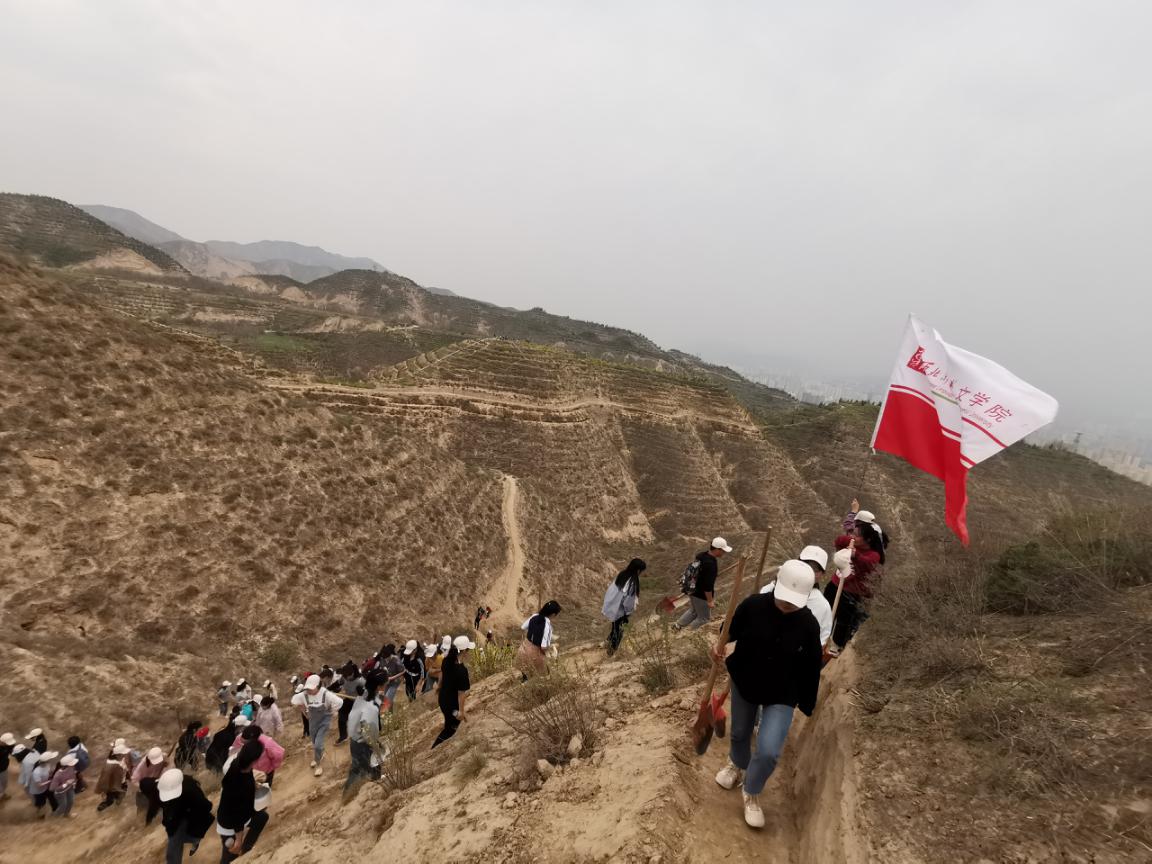 “看到学院的旗帜在山上迎风招展,能给我一种荣誉和能量。大家爬山的过程中互相搀扶、互帮互助,让我感受到集体的力量。虽然植树不多,但跟大家一起流汗、一起欢笑的记忆真的很珍贵。每一颗树苗都凝聚着大家的劳动成果,我们要珍惜劳动果实,也希望来年出现一抹绿色。”2020级汉语言文学1班吕欢欢同学说到。