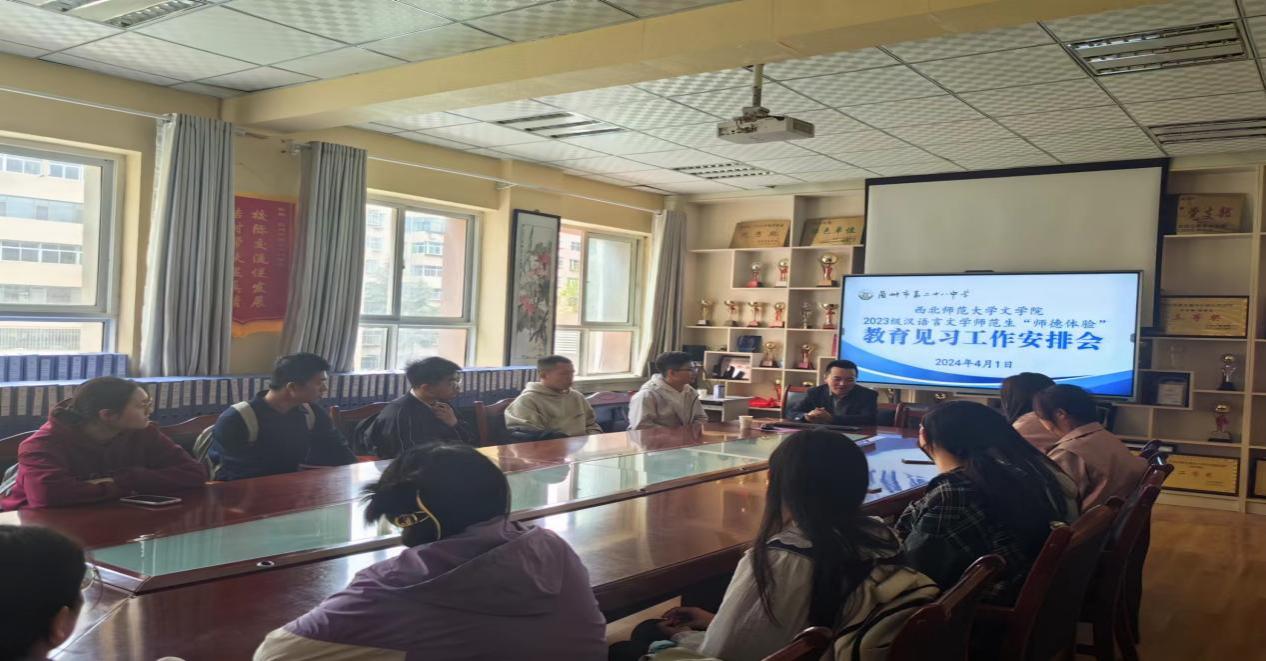了解二十八中校园文化后,二十八中教务处高力主任主持召开了教育见习工作安排会,全体见习员工和二十八中7名语文老师参加会议。