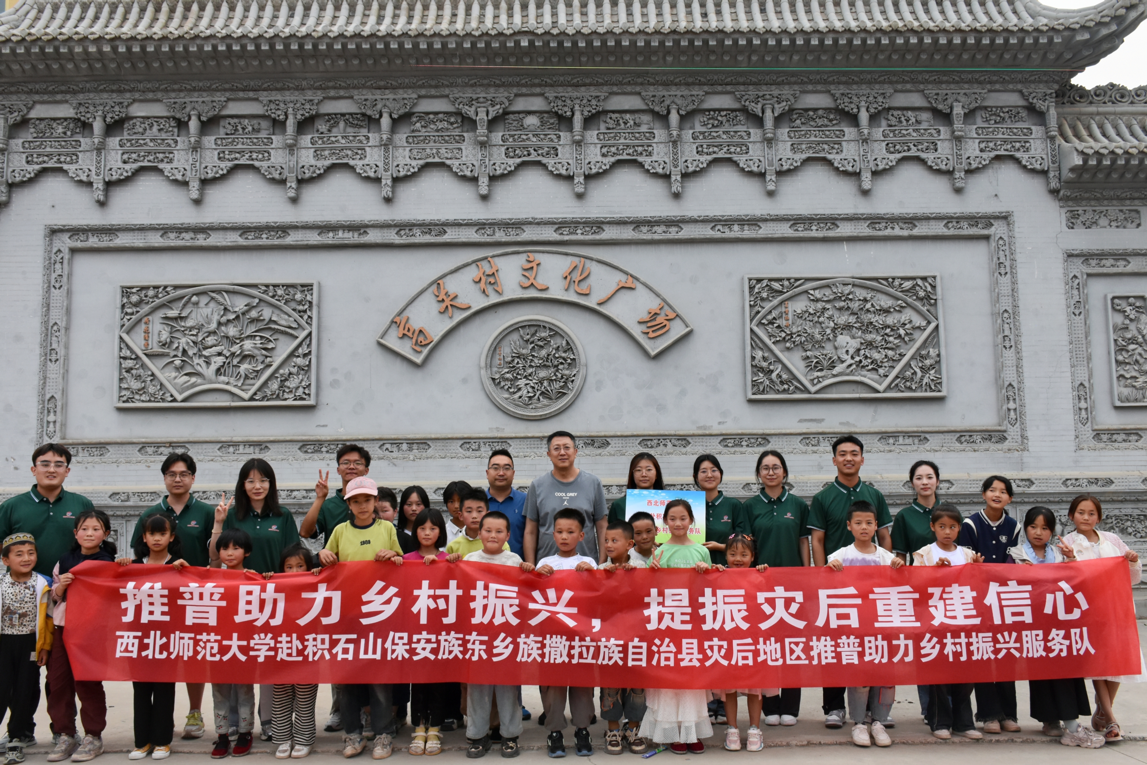 在合影过程中,孩子们对着镜头齐念口号“积石很美丽,我们欢迎你”。他们用自己的方式表现出对自己家乡的热爱,同时也传递出对实践队员的感谢和期待。这份纯真的邀请让队员们深受感动,更加坚定了他们为乡村振兴贡献力量的决心。
