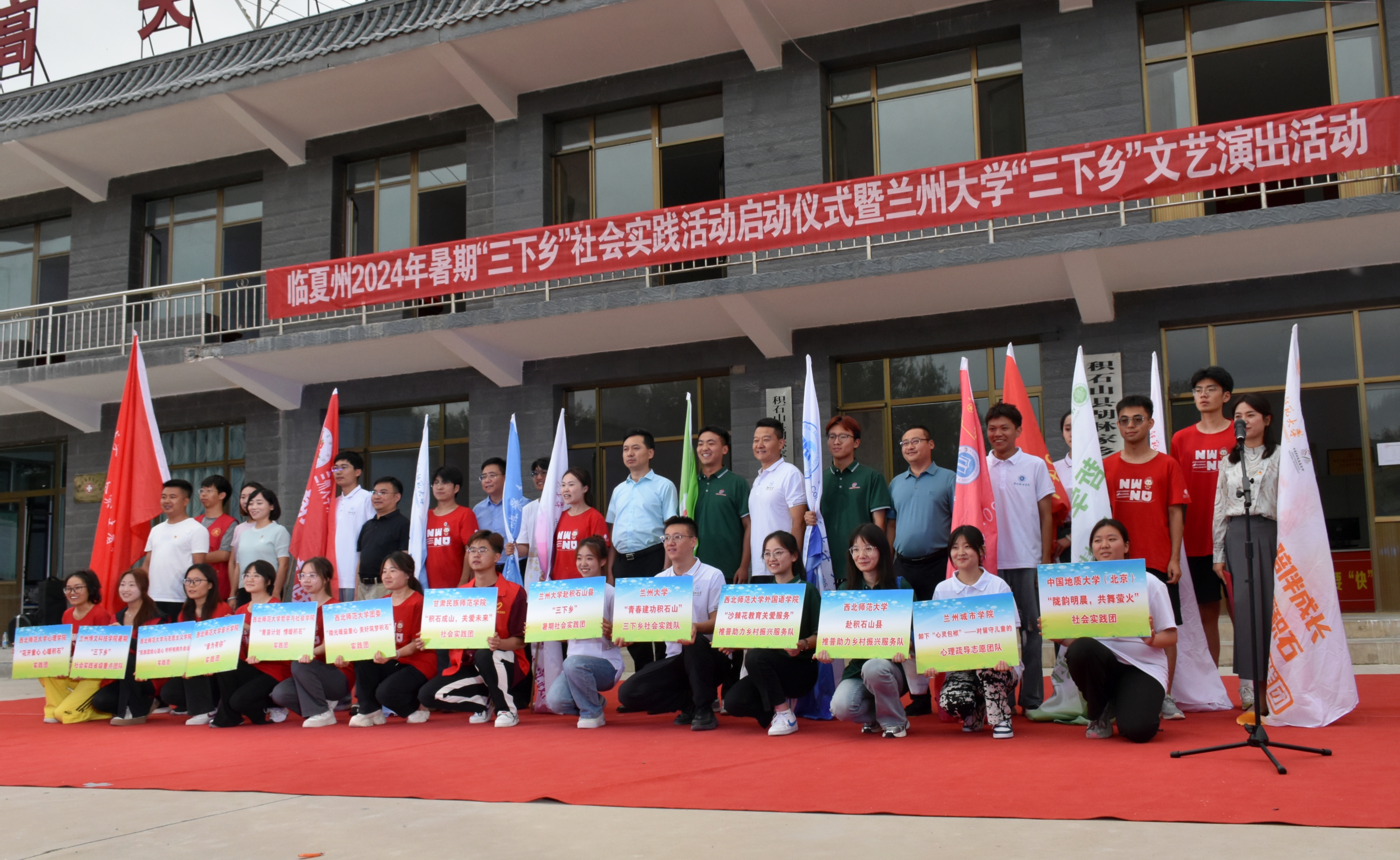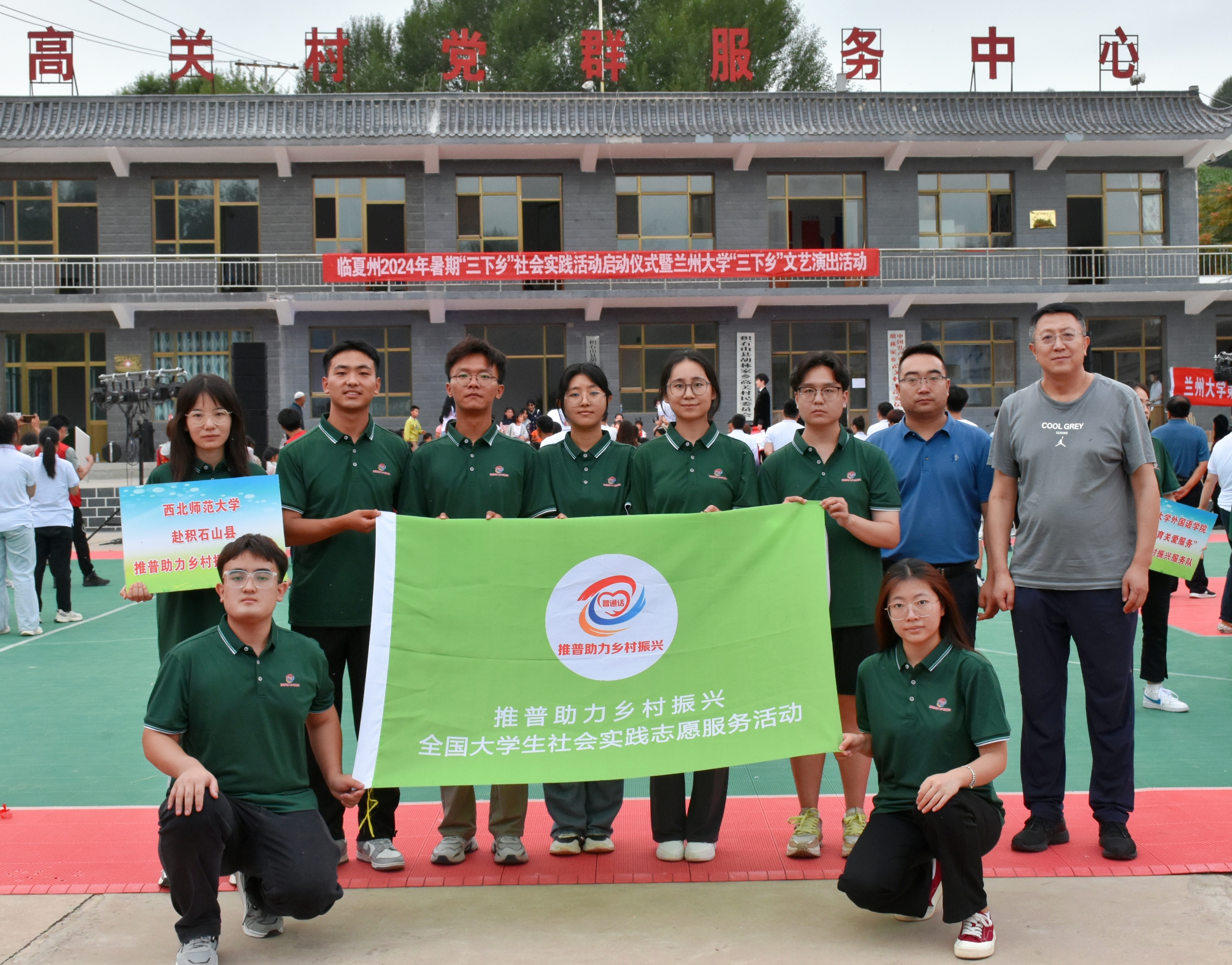 为推广普通话助力乡村振兴,响应习近平总书记的号召,2024年7月18日,应共青团临夏州委和共青团积石山保安族东乡族撒拉族自治县委的邀请,beat365英国官网赴积石山保安族东乡族撒拉族自治县推普服务实践队抵达积石山县胡林家乡高关村村委会参加本次“三下乡实践”活动启动仪式。