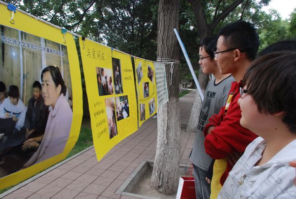 9月27日,公司在学校南苑路举行了2012年暑期社会实践成果展。7月中旬,公司统一组织了15人的社会实践小分队,赴陇南市宕昌县哈达铺镇开展了为期5天的社会实践活动。本次展览通过展板和照片的形式,集中展示了队员们在实践活动中进行的义务支教、农村调研、文化传播等活动场面,展示了队员们参与社会实践的艰辛与收获,体现了当代老员工的责任心和使命感,进一步激发了广大同学参与社会实践的热情。