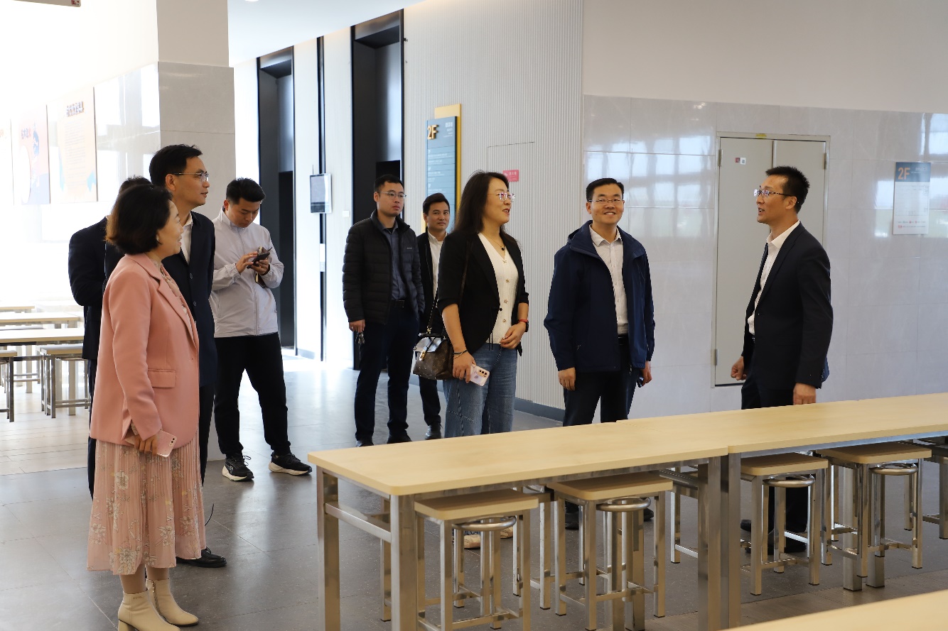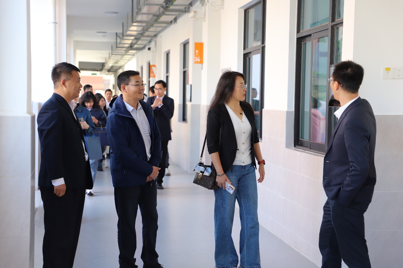 在珠海二中麒麟校区董事长刘中正、副董事长淡宏涛、副董事长谢峰及行政人员陪同下参观校园环境和教学设施,通过参观大礼堂、运动场、心理活动室、食堂、图书馆、教师宿舍等地深入感受学校教育、体育、文化育人氛围。